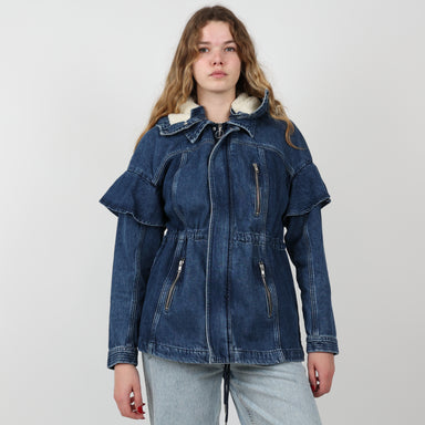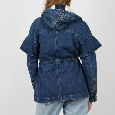 Original Price £150.00Current Price £95.00UK Size 10 Seventy + Mochi Jacket, New with Tags / Box. - Seventy + Mochi denim jacket - Detachable hood with faux fur & zip detailing - Cin...