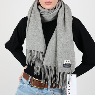 Original Price £170.00Current Price £80.00UK Size One Size Acne Studios Scarf, Excellent Condition. - Virgin wool, light grey scarf - Fringe detailing - Large size Fabric: Virgin WoolCIRKE...
