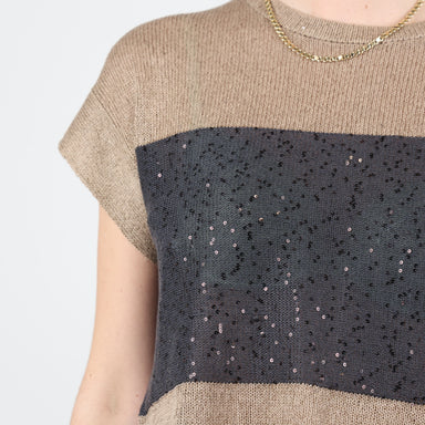 Original Price £1,850.00Current Price £195.00UK Size 10, M Brunello Cucinelli Knitwear, Excellent Condition. - Net pullover with dazzling stripes - Open back - Tie bottom Fabric: Linen, Silk,...