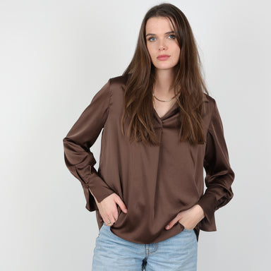 Original Price £269.00Current Price £65.00UK Size 14, 42 Claudie Pierlot Blouse, Excellent Condition. - Satin finish v neck blouse - Loose fit - V neck - Slightly ballooned sleeves Fabric:...