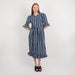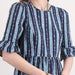 - Blue cotton / linen blend dress with floral details