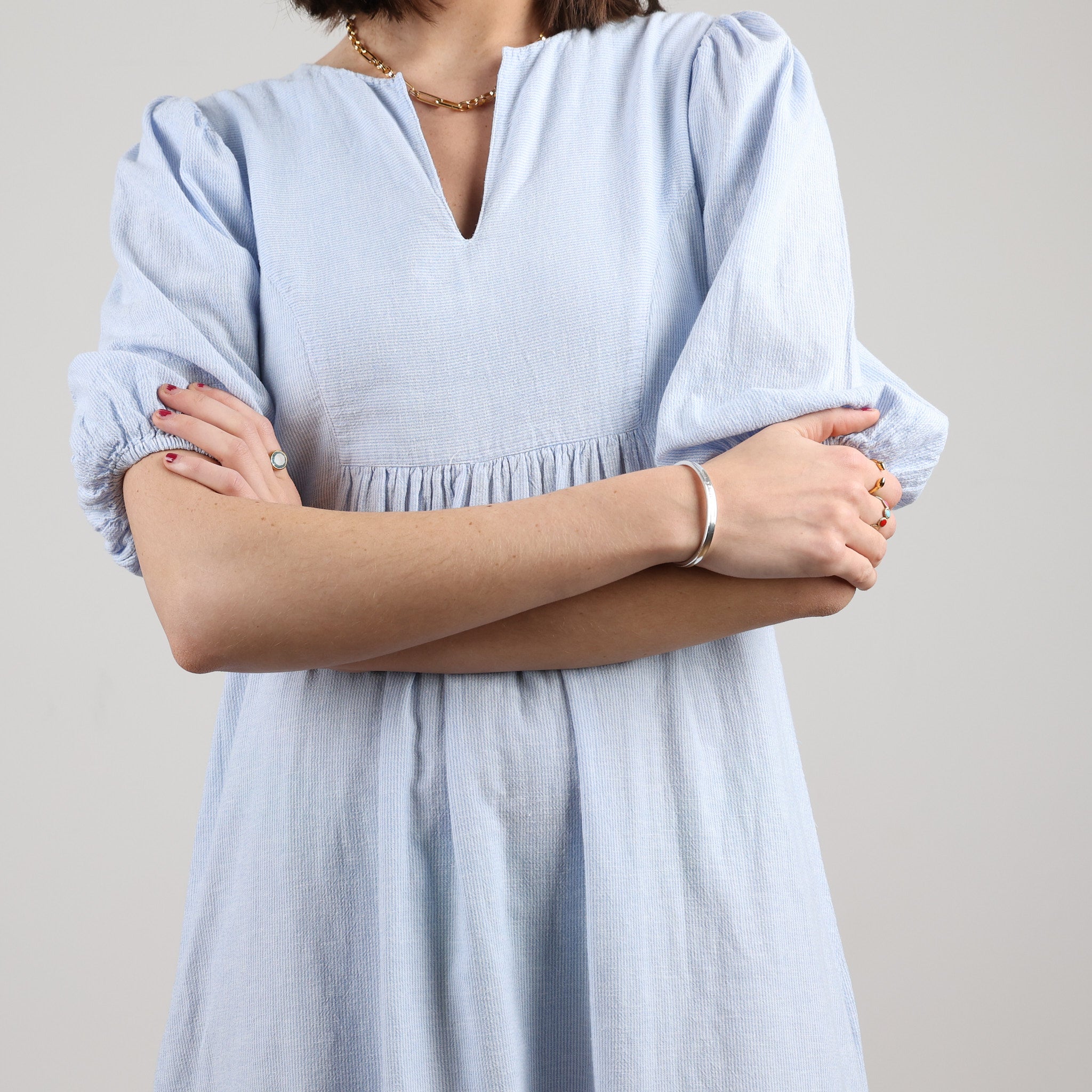 Seraphina Dress, Excellent Condition. - Blue and white striped Seraphina dress - Tiered midi dress - Balloon sleeves