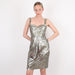 - Silver and gold-toned sequinned mini dress from Burberry featuring sequin embroidery, a fitted silhouette, cut out details, a sweetheart neckline, spaghetti straps, a back zip fastening, a fitted waist, a rear central vent, a short length and a full lining.