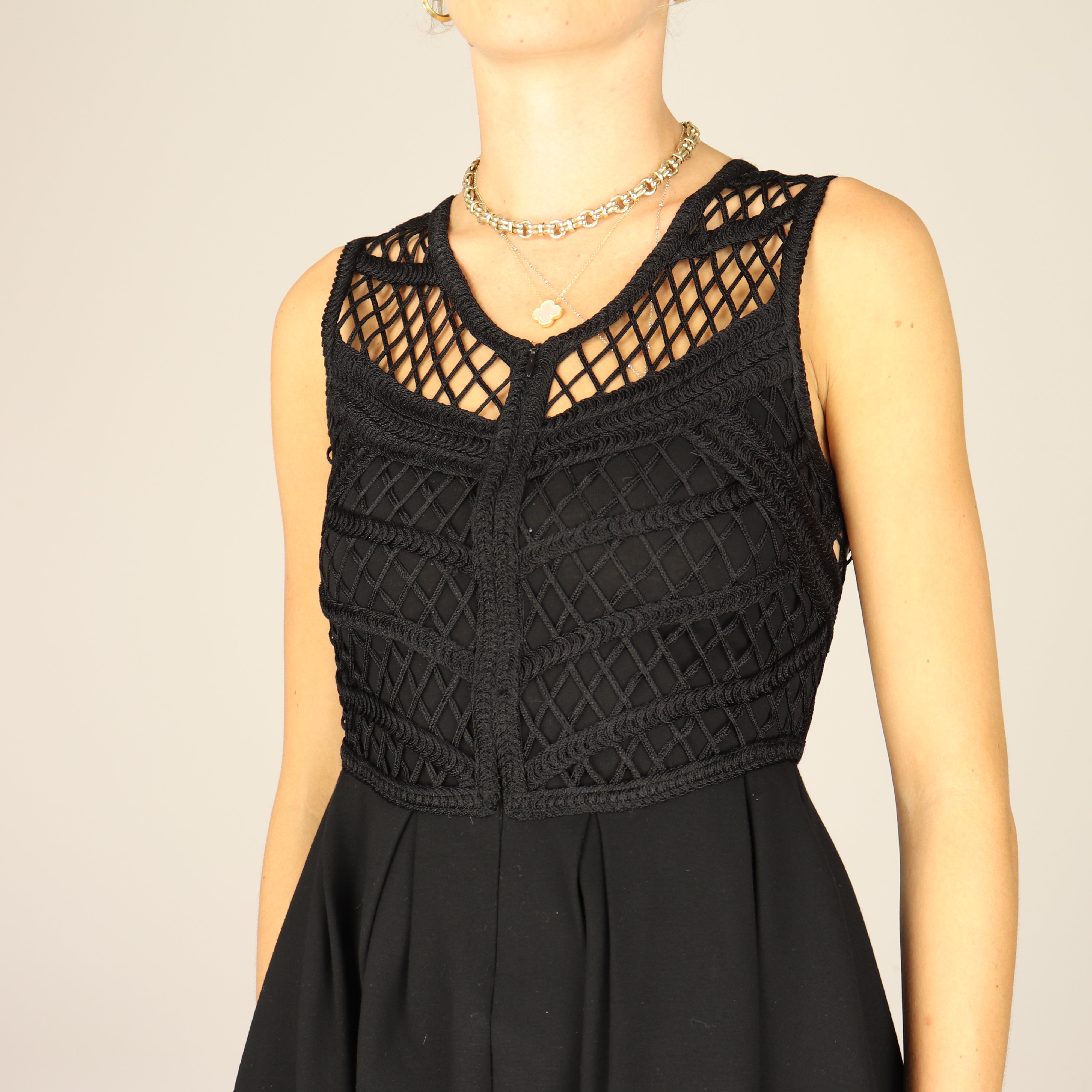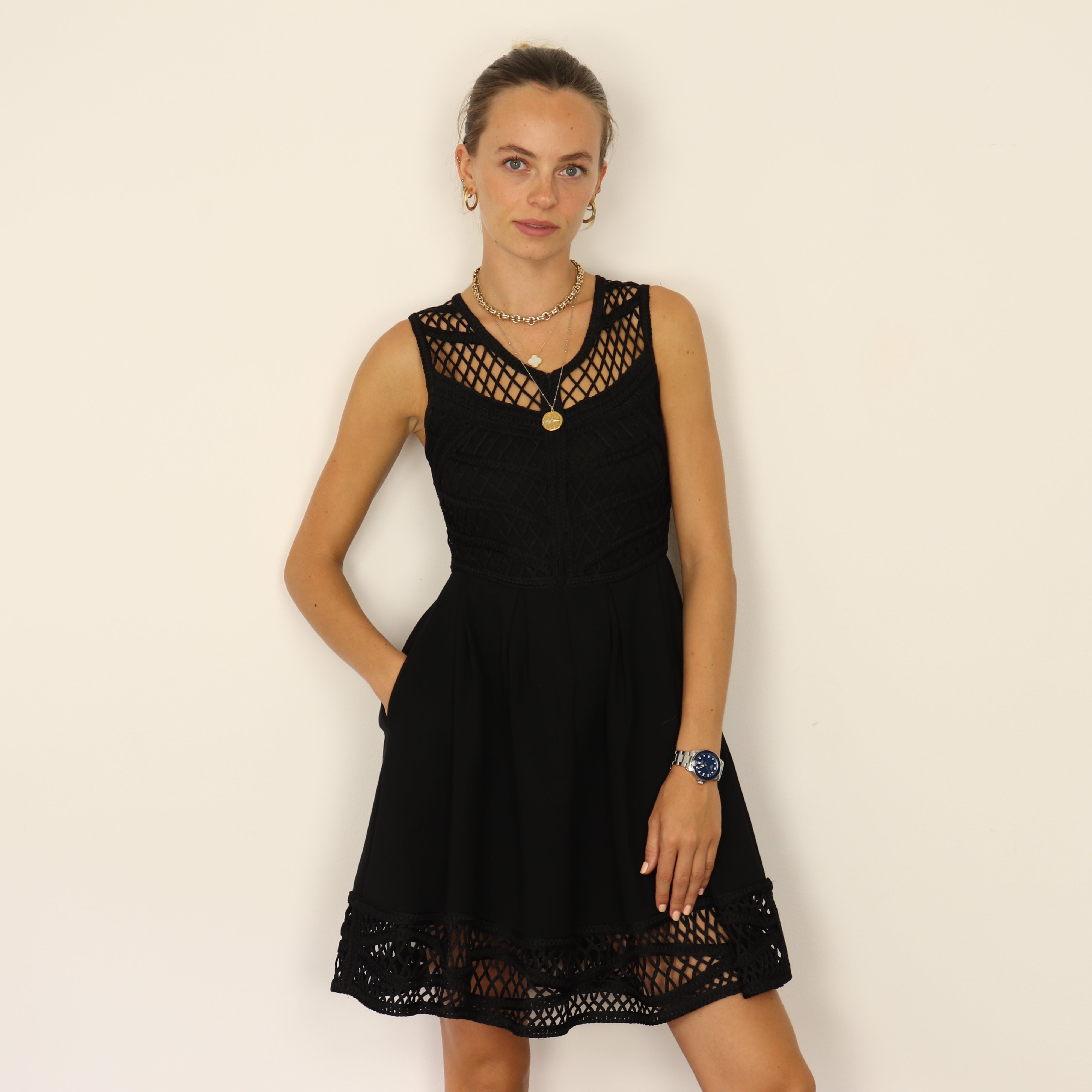 Maje Dress, Excellent Condition. - Royaliste black dress - Black jersey skirt - Heavily crocheted bodice with a - Zip to the front - Matching jacket available (see Verona jacket)
