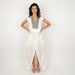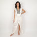 - V-neckline with metallic beading