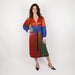 - Colour block silk wrap dress