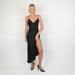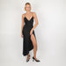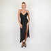 - Classic silk gown with thigh high slit at front