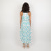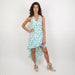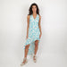 - Asymmetrical blue and white midi-length dress