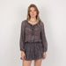 - Black, purple and navy patterned silk mini dress