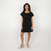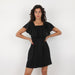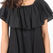 - Cotton linen black mini dress with elasticated off the shoulder