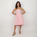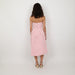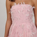- Pink strapless beaded and feather dress