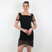 - Boutique Black Midi Dress with Tulle Mesh Trim