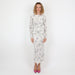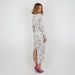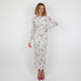 - Cream long-sleeve dress with grey floral details