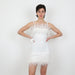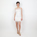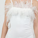 - Feather trim on hem and neckline