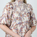 - White Floral Maxi Dress with Metallic Sheen and Shirred Neck Detail