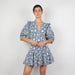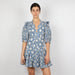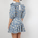 - Blue and white floral embroidered mini dress