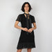 - Black dress with silver metal trimmings