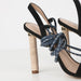 - Open-toe and wrap around leather strap fastening
