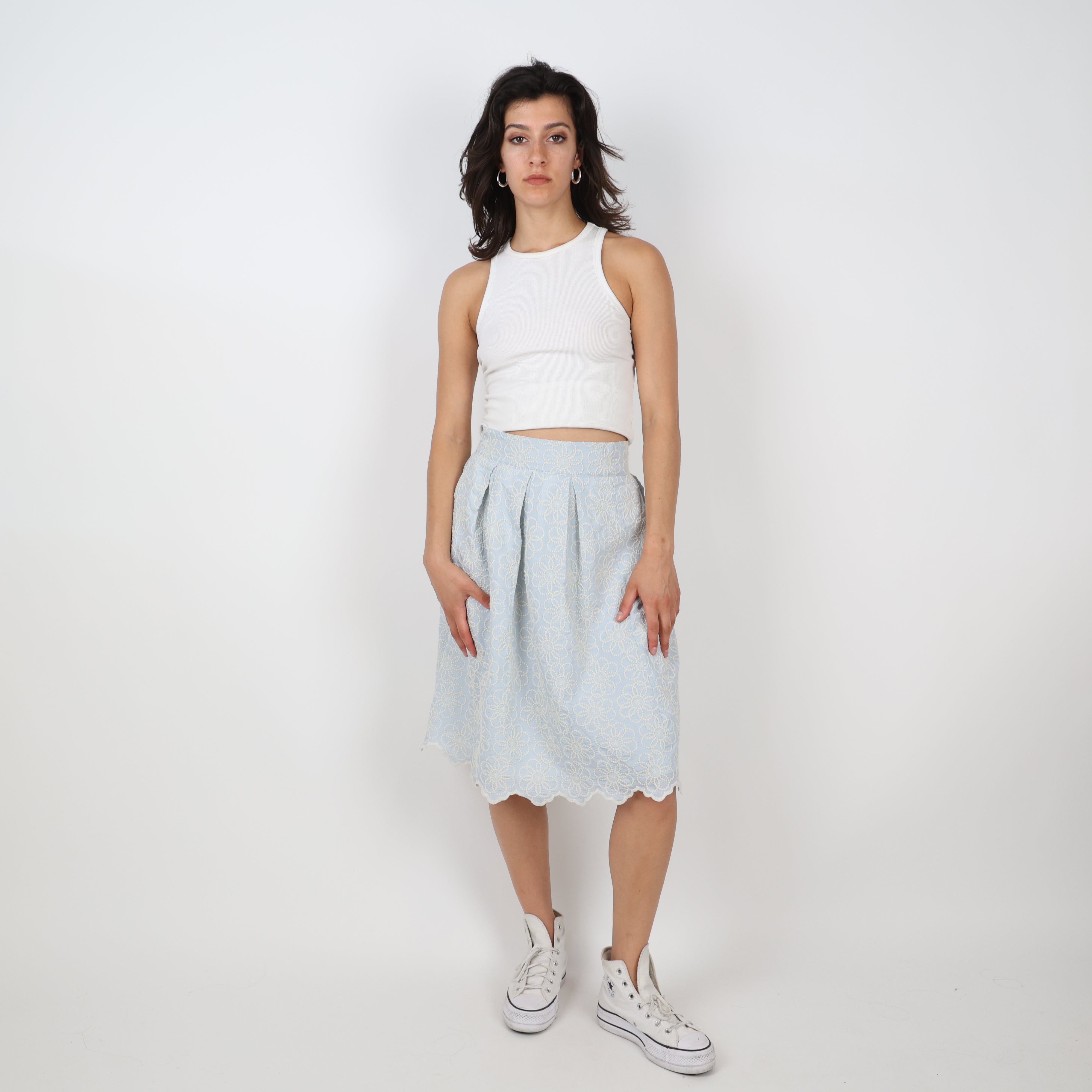 - Anja Rock Blue Floral Embroidery Skirt